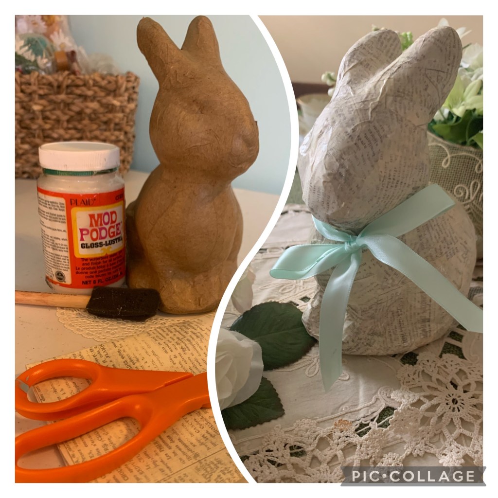 Nothing super fancy…just a bunny covered in strips of tissue paper…which made for a fun addition to this year’s Easter decor.