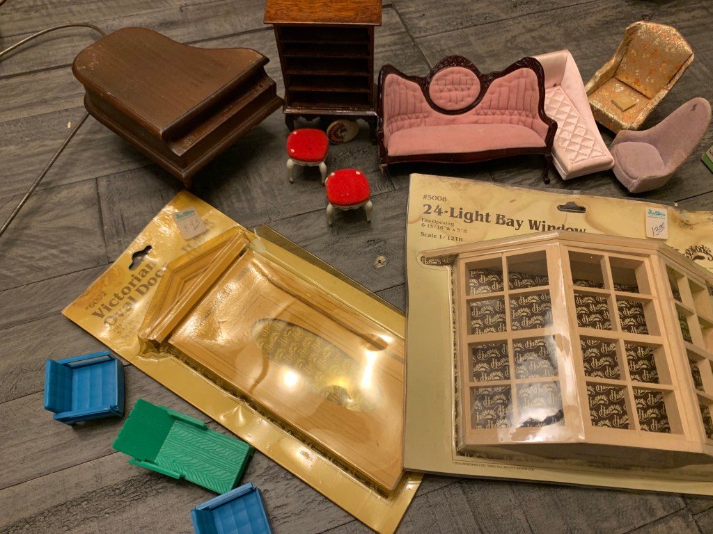That afternoon, I spent a little time at two of the goodwill outlets. It wasn’t as epic of a haul as last weekend, but I did manage to find a few fun things in the mix…including a few puzzles that were brand new or in bags, a lovely fur stole with the owners initials sewn into the lining (miraculously found inside a hand-embroidered pillow case just before a rotation), three Fiestaware bowls (buried under a pile of discarded clothing) and some dollhouse furniture in not-too-terrible shape.