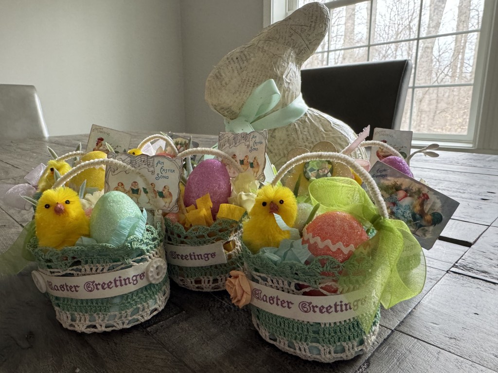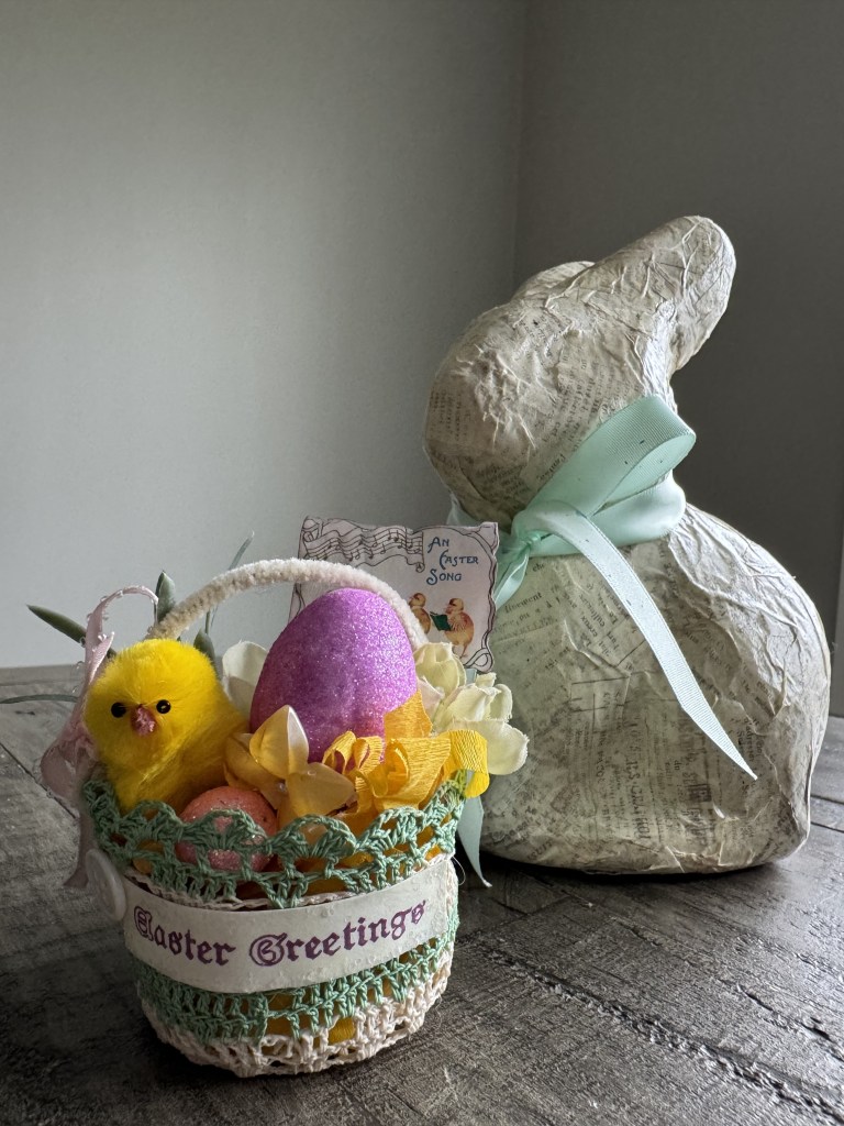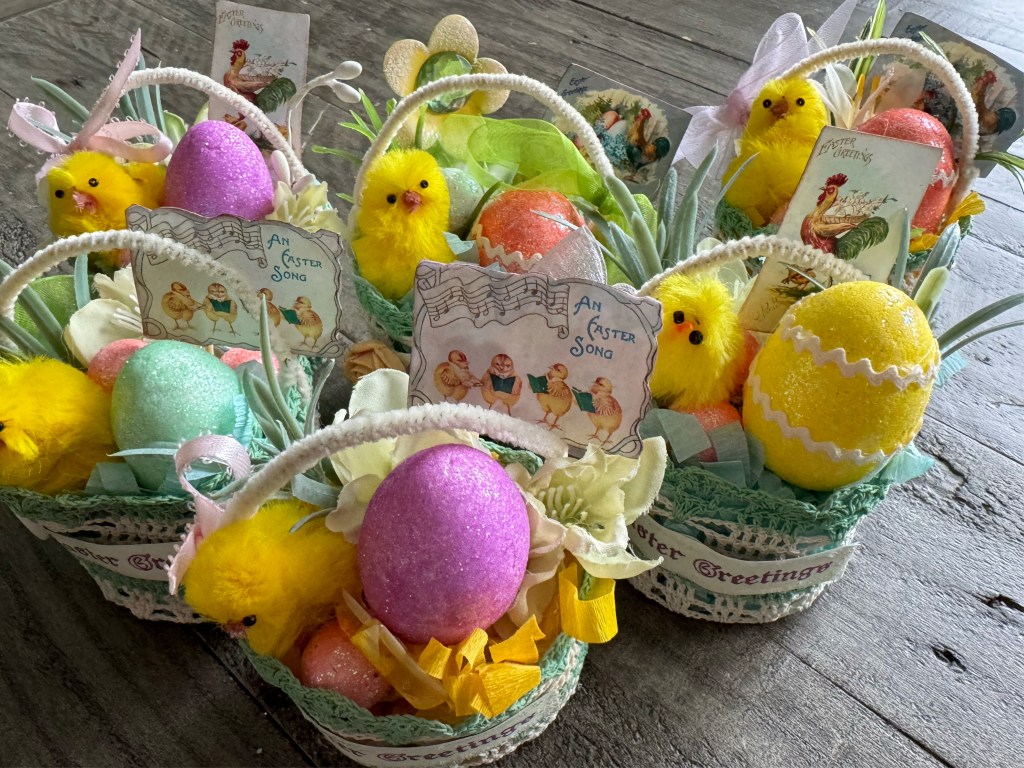 I made these Easter baskets with vintage and thrifted supplies….and thought I’d share some of the old postcards that I used as an embellishment to the craft. Check out the video where I show the creation process: https://youtu.be/RfnHoHtVf1Y