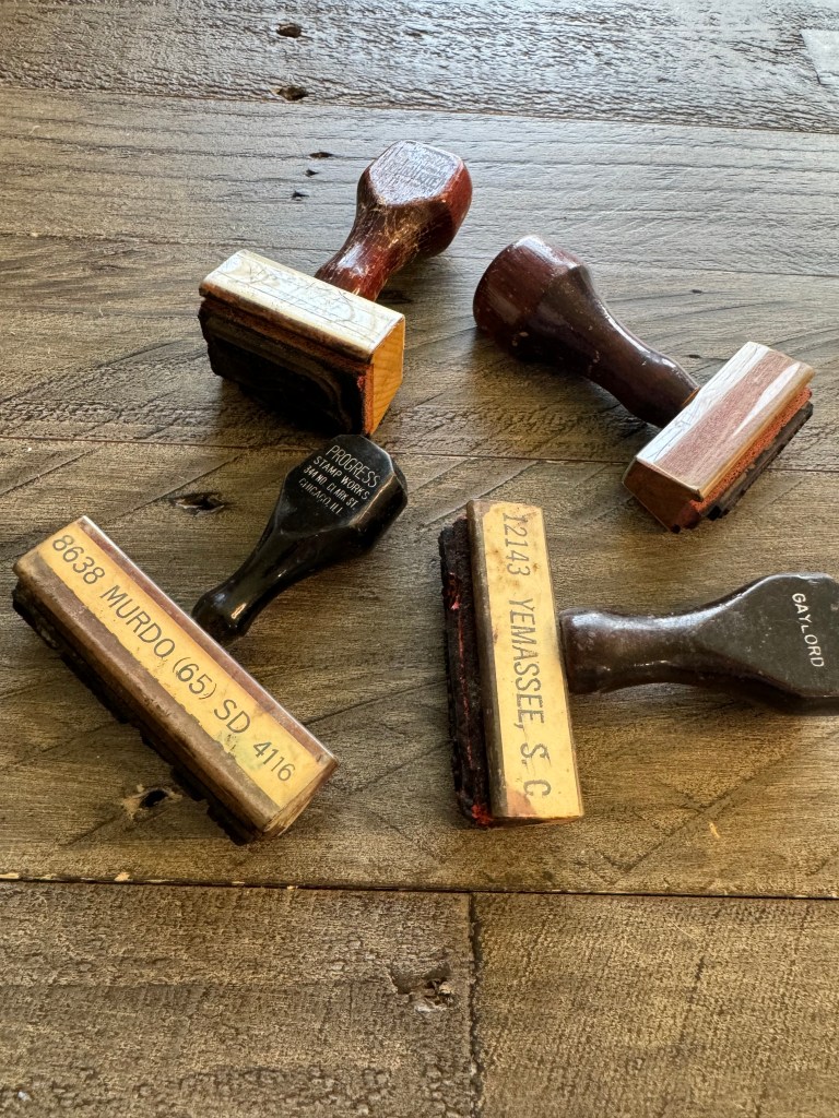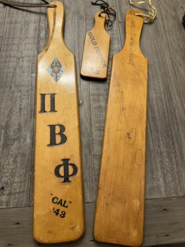 My mom had seen several things in the photos that she remembered belonging to her mother, her Grandmother and her Great Aunt, but thankfully we’d set our expectations pretty low for finding anything left that had sentimental value. With that in mind I was delighted to find a set of sorority and fraternity paddles that had belonged to my Granny and Grandpa and my mom ended up finding two pieces of art that had been carved by her Great Uncle. I found a few other treasures as well.