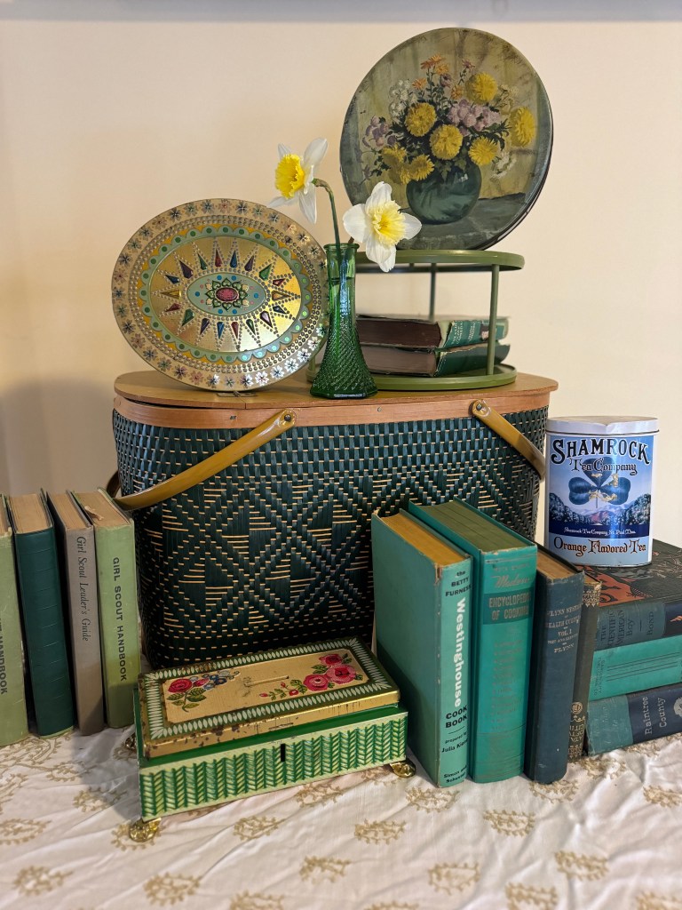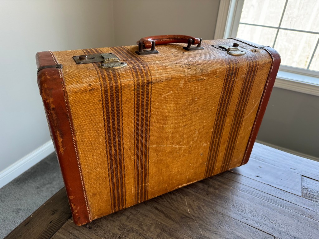 On this occasion my shopping bag for thrifted finds from the Goodwill Outlet was a vintage suitcase. I thought that made for the perfect container for vintage treasures. Way better than a plastic bag, don’t ya think?!