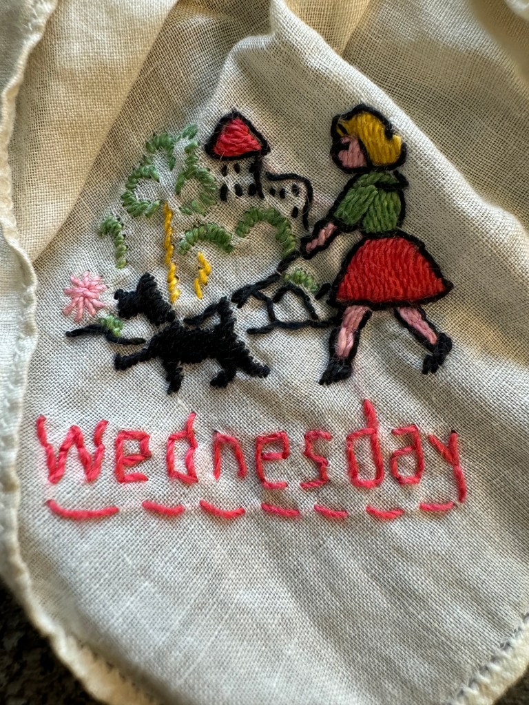 I discovered late last night that there was an estate sale at my aunt’s house. She’d passed away over the holidays so we’d been wondering if they’d have an estate sale. My mom and my aunt had been estranged from one another for several years and we’d therefore been somewhat estranged from that side of our family. In any case, late last night I was scrolling through various estate sale sites and came across one in the town where my aunt lived. I was several photos in to the listing photos when I saw a piece of artwork done by my other aunt, and then I poked around a little more to see if anything else looked familiar and saw pictures of my cousins on a dresser-so that pretty much confirmed that it was her house. Unfortunately the sale had started on Saturday – so we’d already missed the first two days, but there was one left. I messaged my mom and sister and we made a date to meet up there today.