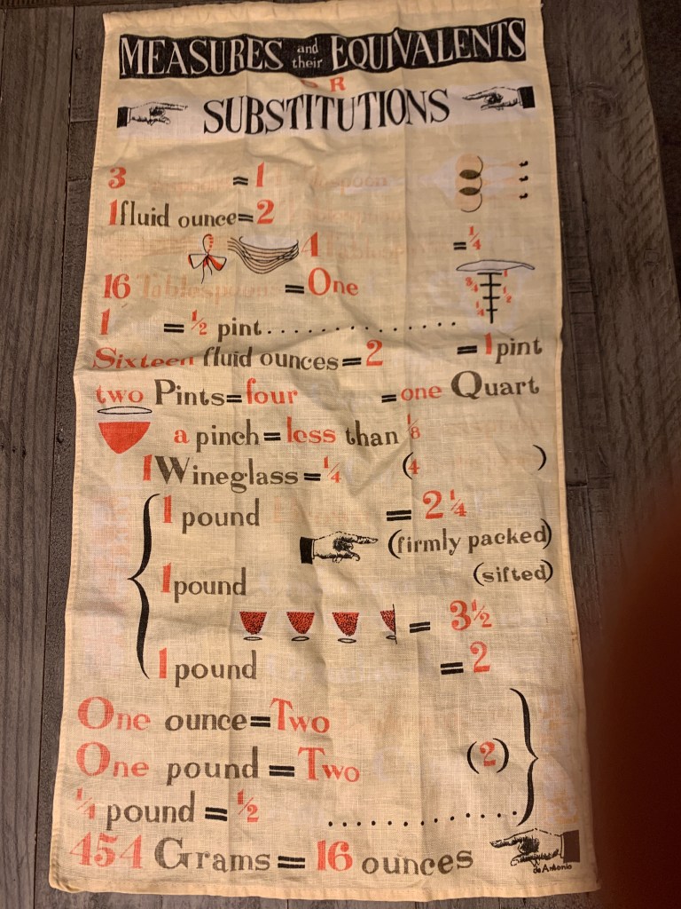 The first great find of the day was a vintage cooking set – similar to one I remember playing with at my Granny’s house when I was a kid. It looks like it was designed to be something like an easy bake oven – with a power cord that had been cut off (probably for the best since it was a little rough…and definitely old). I loved the stove, but the thing that delighted me about it even more was finding a little note tucked inside along with some of the tiny metal pots and trays that said it had been owned by Janet Kinsey Beanblossom and she’d received it around 1944.