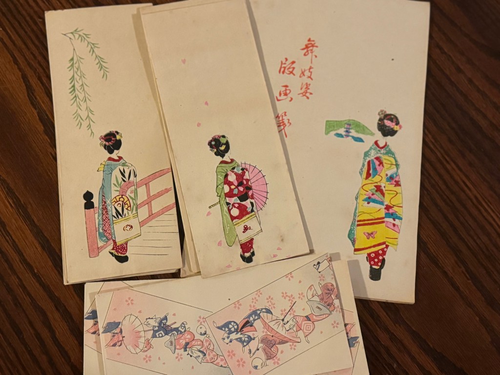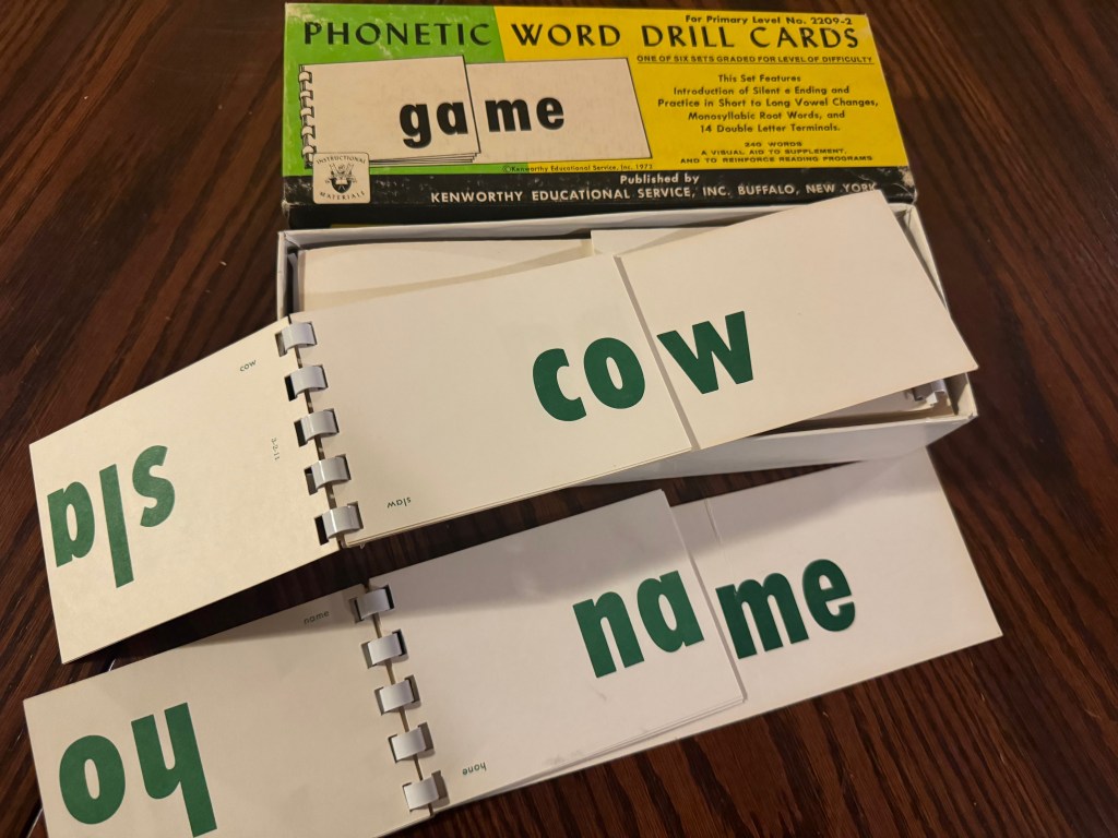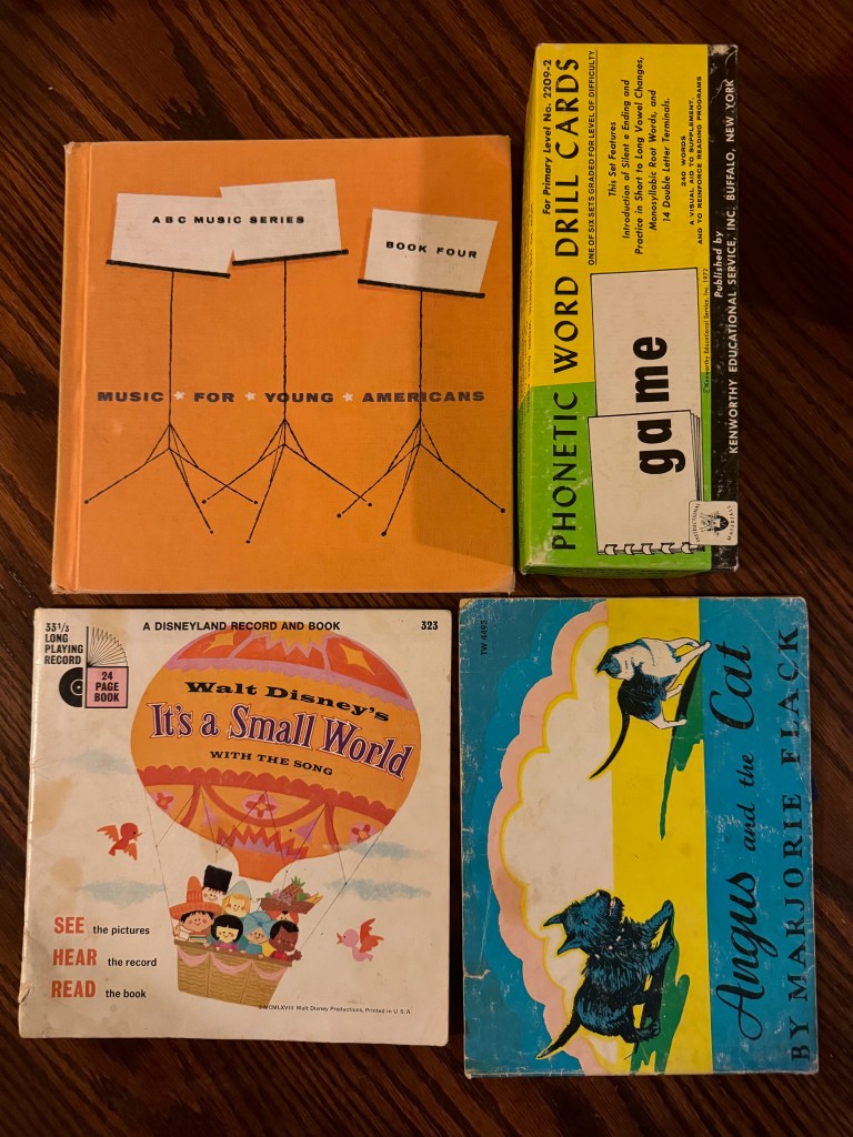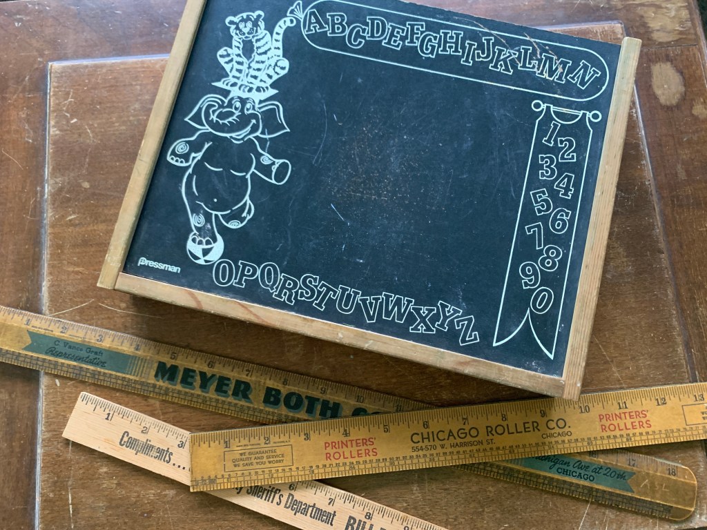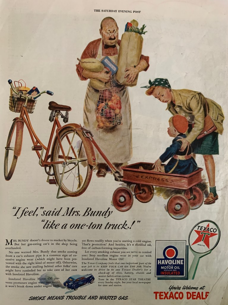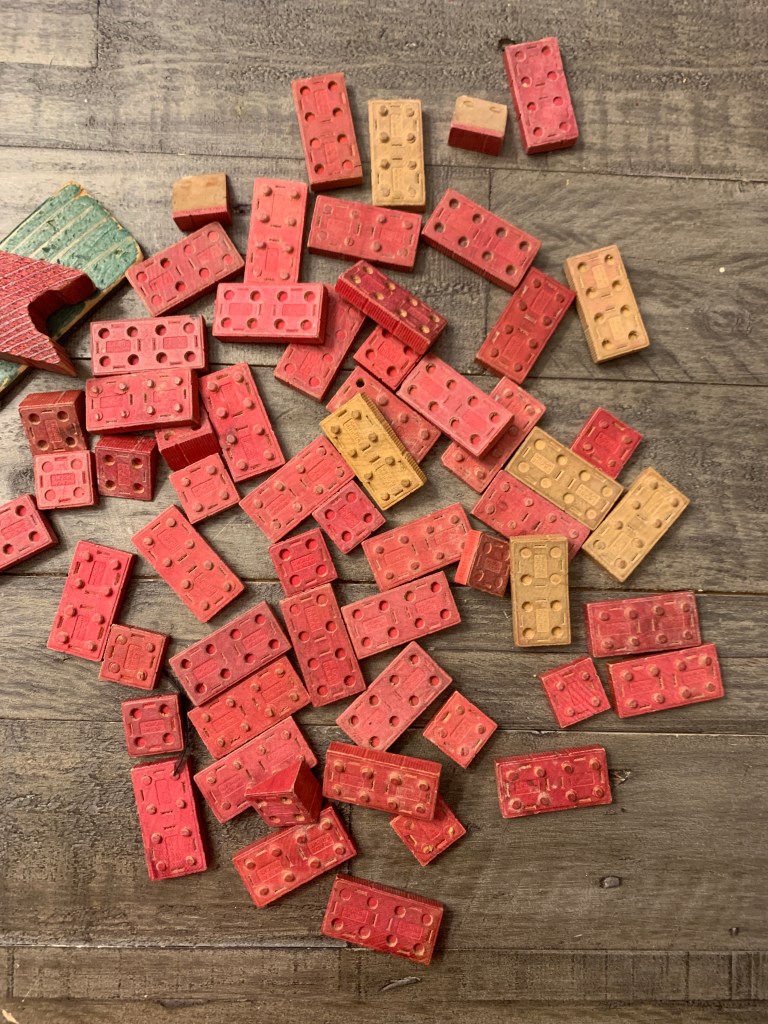 Check out this haul from about four different trips to the Goodwill Outlets in Indy and the Salvation Army in Bloomington (where I found the ceramic rooster planter). Among my most treasured Goodwill finds were a Minnesota Model X Sewing Machine (which seems to have been built around 1912-1913 according to all the great info I found on the Victorian Sweatshop Message Board, some OPA ration tokens from WWII that had apparently been used as bingo markers by the previous owner (I learned more about these from the site: Owlcation), part of a vintage toy car called “Nifty,” some cool metal tins, some Ruth Reeves linen napkins, and a lot of vintage greeting cards and doll clothes patterns, and a life-size Scooby Doo advertising display.