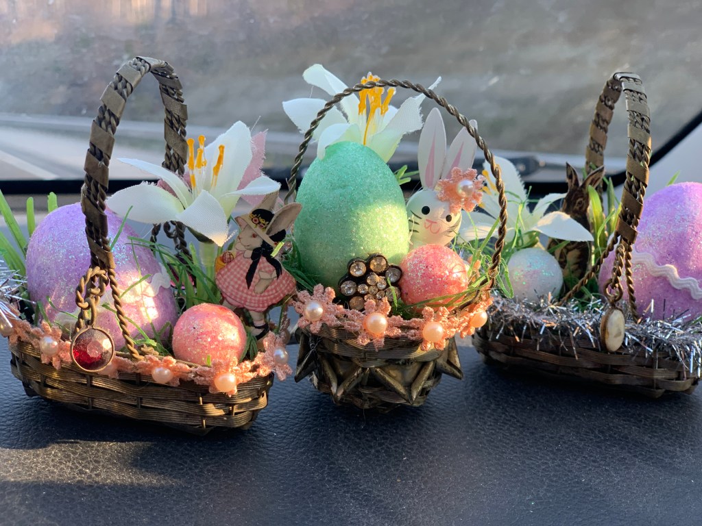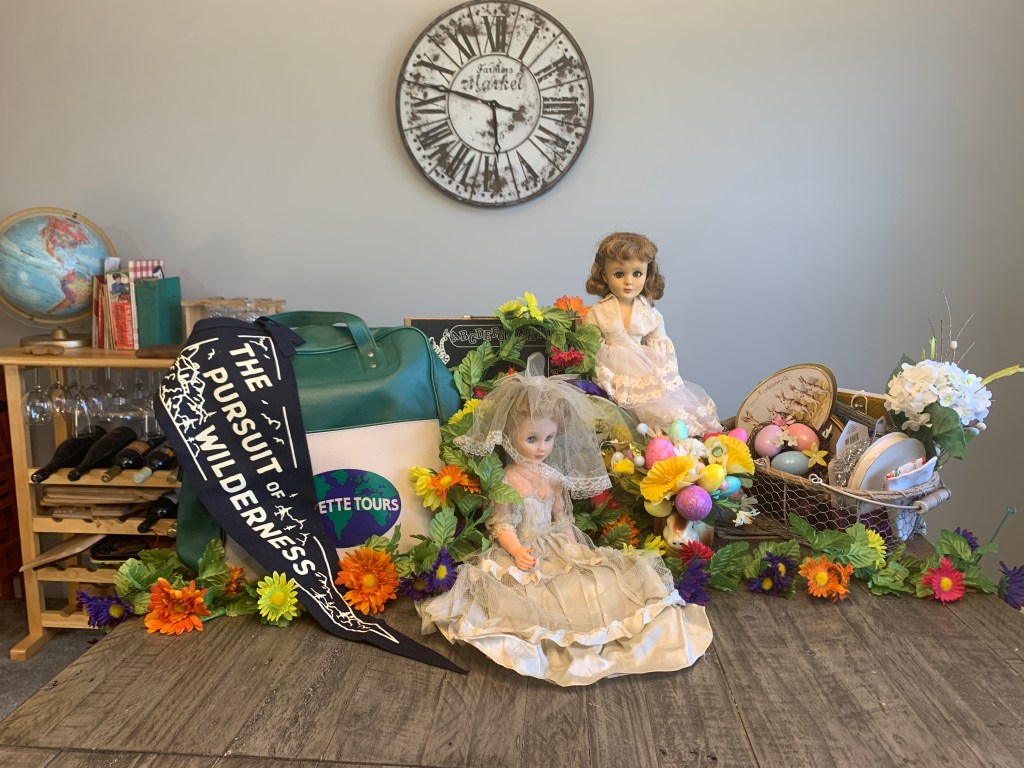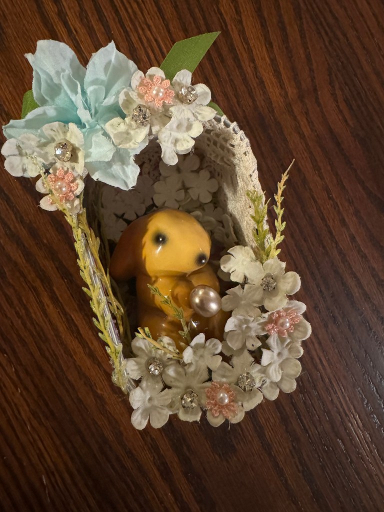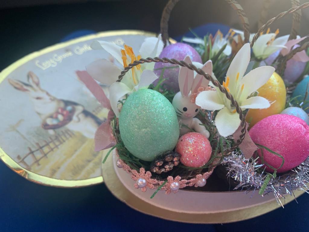 The line art images are from a McCalls magazine from February 1910. I also snapped photos of some ads from Saturday Evening Post Magazines from 1943 and 1963. Among the other treasures were two bride dolls – possible Madame Alexander (but I need to do a little more research). Also displayed are some Easter gifts I made for family members today…all pieces are from the Goodwill (with the exception of the rabbit images I found on the Graphics Fairy website). There’s also a picture of my new doll house (thanks to Evie for finding it up in Indy) and the box of vintage ornaments I found when I went up to Indy for my Dad’s birthday last weekend. All in all, I’d say things things are definitely “Good Enough” for my April thrifting thus far!