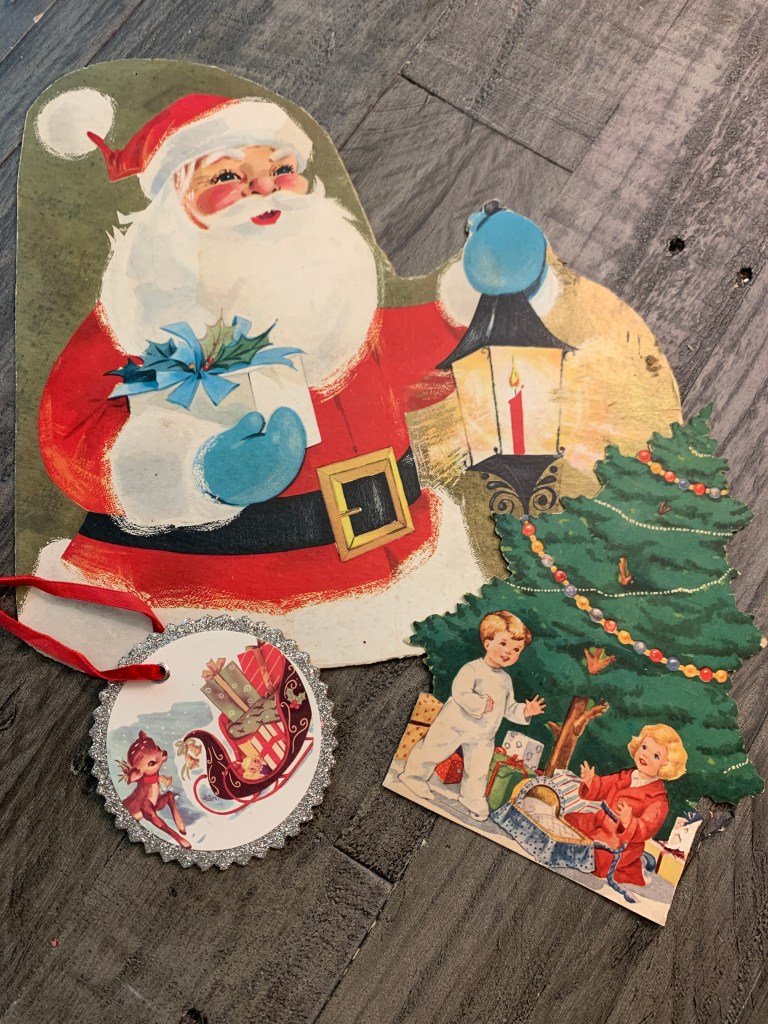 There’s treasure in trash if you aren’t afraid _to_ hunt…meant to put the number 2 in there since I couldn’t find more T’s but forgot! Vintage Rumplestiltskin Puzzle Letters and Postcards from the maiden voyage of the Cunard line to Antartica Pieces of a Masonic CertificateMork Action Figure Lone Range Press Button Toy from the 40sFisher Price Vintage CameraLennon Sisters Paper DollsVintage Halloween Decorations