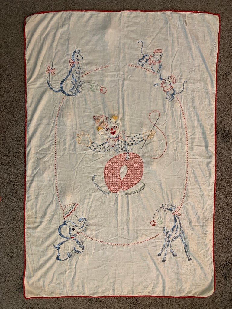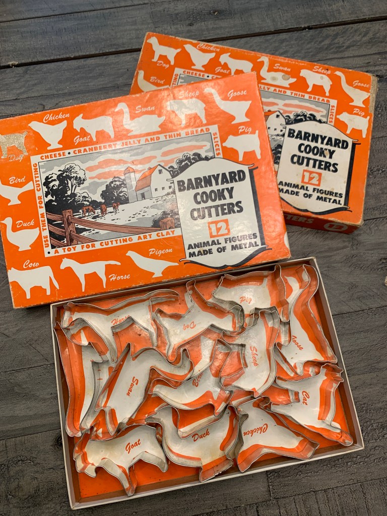 Check out this haul from about four different trips to the Goodwill Outlets in Indy and the Salvation Army in Bloomington (where I found the ceramic rooster planter). Among my most treasured Goodwill finds were a Minnesota Model X Sewing Machine (which seems to have been built around 1912-1913 according to all the great info I found on the Victorian Sweatshop Message Board, some OPA ration tokens from WWII that had apparently been used as bingo markers by the previous owner (I learned more about these from the site: Owlcation), part of a vintage toy car called “Nifty,” some cool metal tins, some Ruth Reeves linen napkins, and a lot of vintage greeting cards and doll clothes patterns, and a life-size Scooby Doo advertising display.