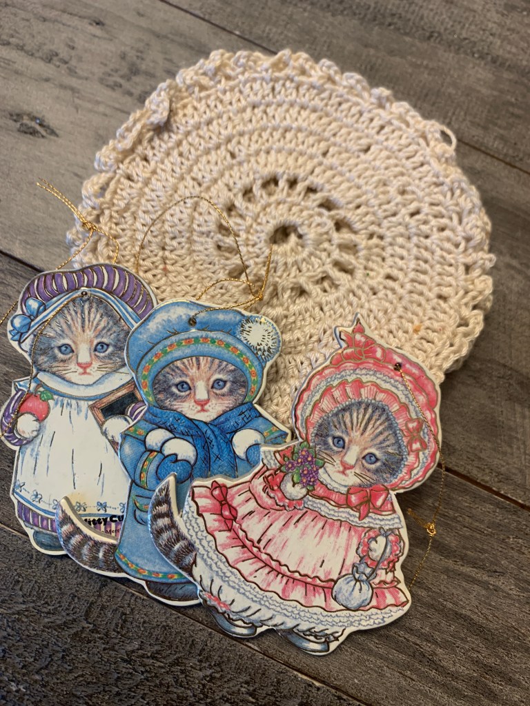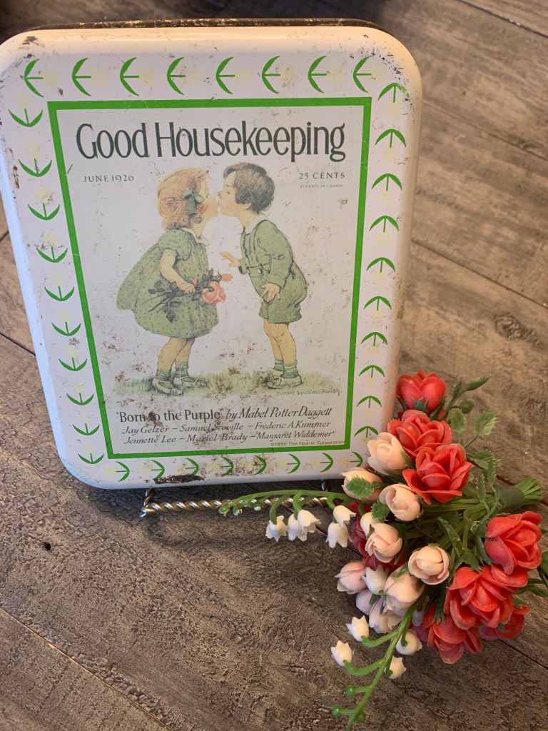 Check out this haul from about four different trips to the Goodwill Outlets in Indy and the Salvation Army in Bloomington (where I found the ceramic rooster planter). Among my most treasured Goodwill finds were a Minnesota Model X Sewing Machine (which seems to have been built around 1912-1913 according to all the great info I found on the Victorian Sweatshop Message Board, some OPA ration tokens from WWII that had apparently been used as bingo markers by the previous owner (I learned more about these from the site: Owlcation), part of a vintage toy car called “Nifty,” some cool metal tins, some Ruth Reeves linen napkins, and a lot of vintage greeting cards and doll clothes patterns, and a life-size Scooby Doo advertising display.