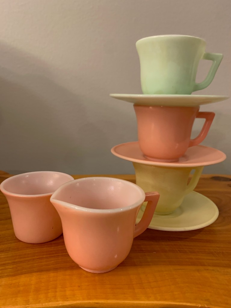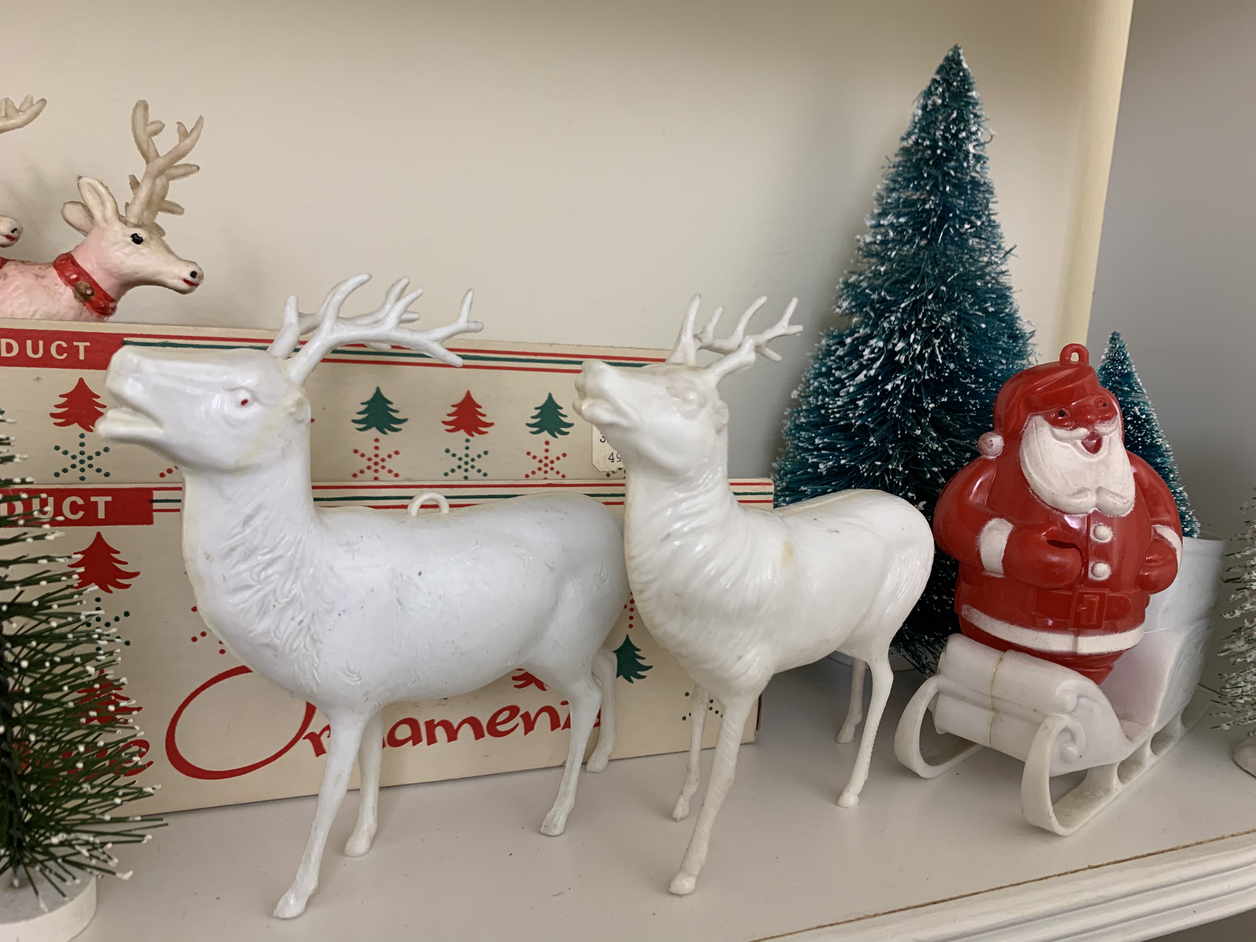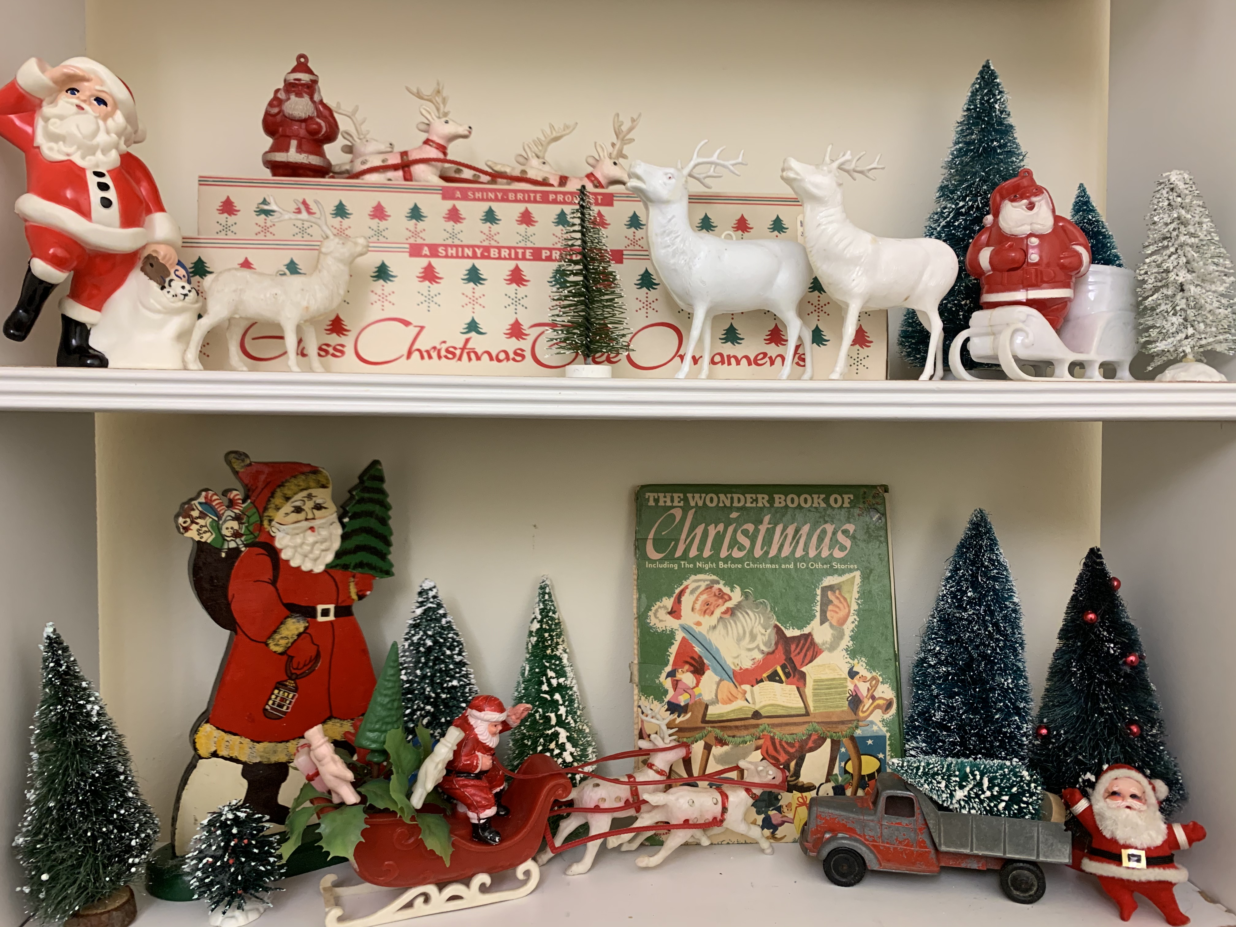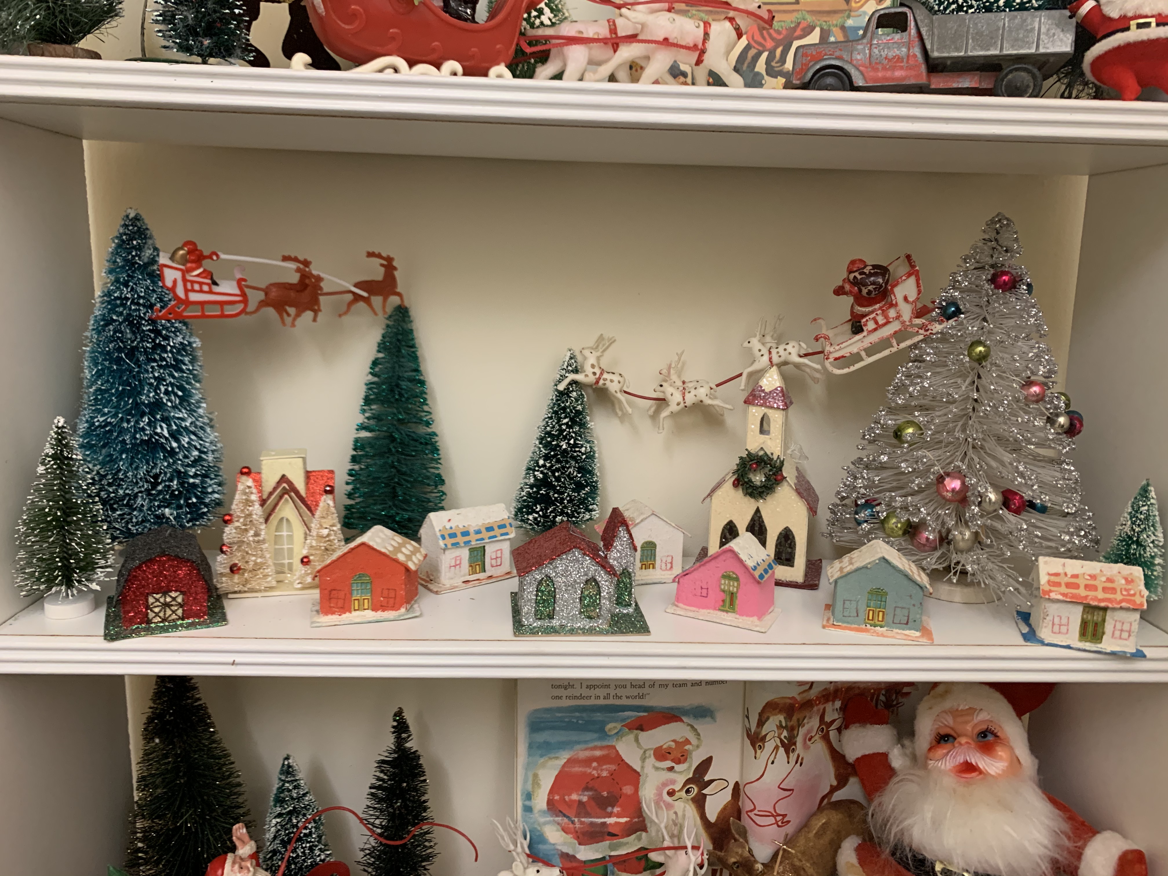 My Christmas display stays up year-round in a small spare-bedroom. It is ever-changing as new finds are acquired, but it always brings me great joy to step into that room and feel like it’s Christmas, even if it is the middle of July.