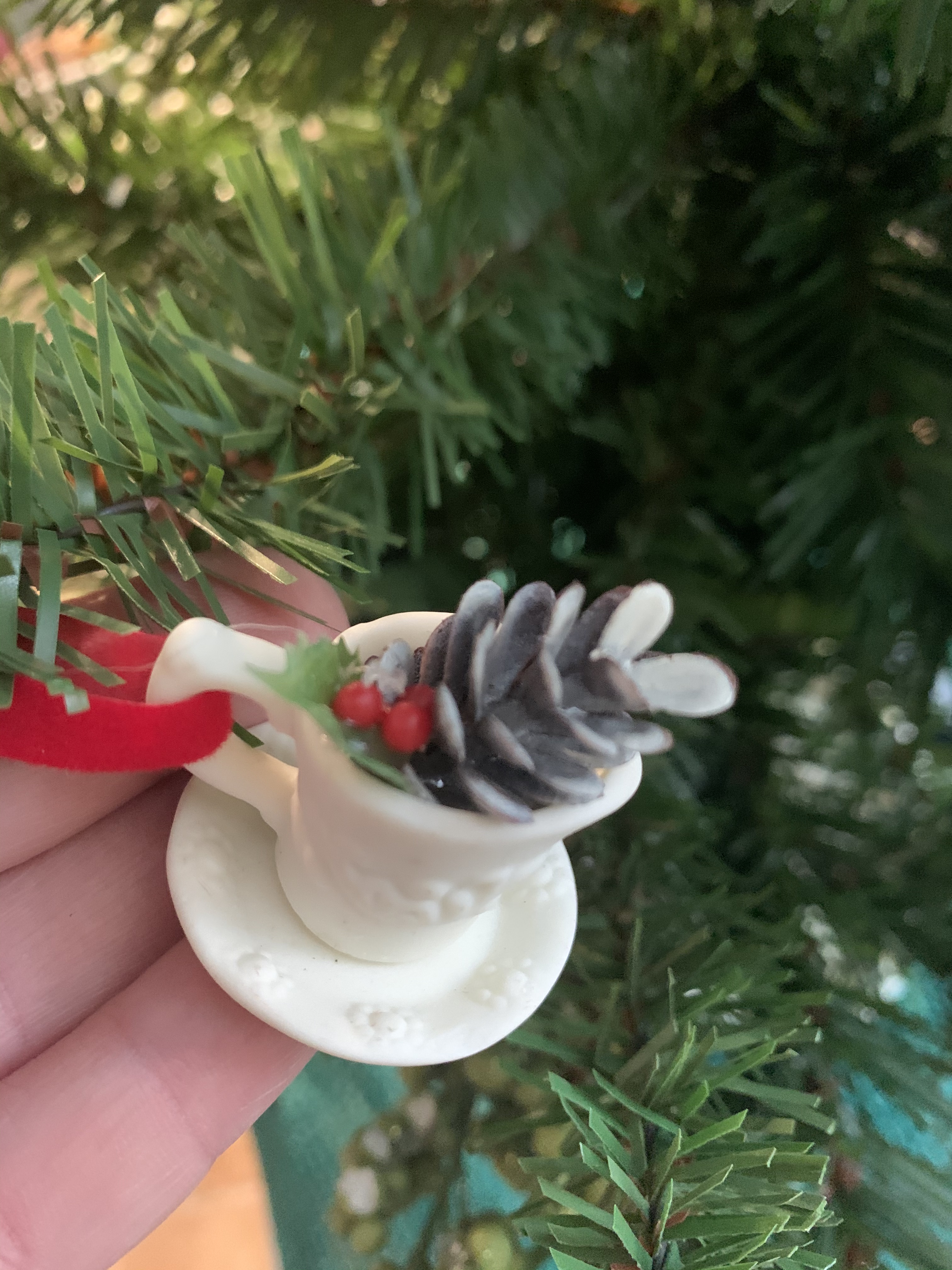 I love Christmas and I love tea…so I’ve been collecting miniature tea pots and cups throughout the year to make a tea tree to put in my tea room. So simple, and so much fun!