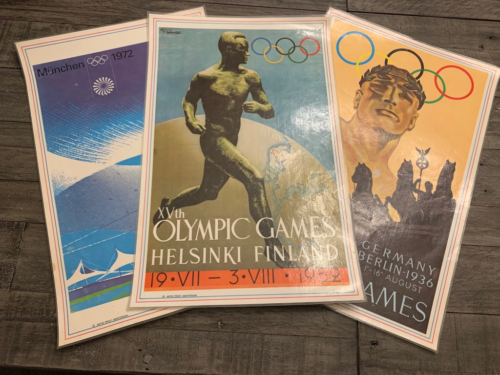 This week’s thrifted finds included some olympic treasures (a set of placemats from 1972) and some very timely decor for tonight’s superbowl game. Can you say “W for the win?!”